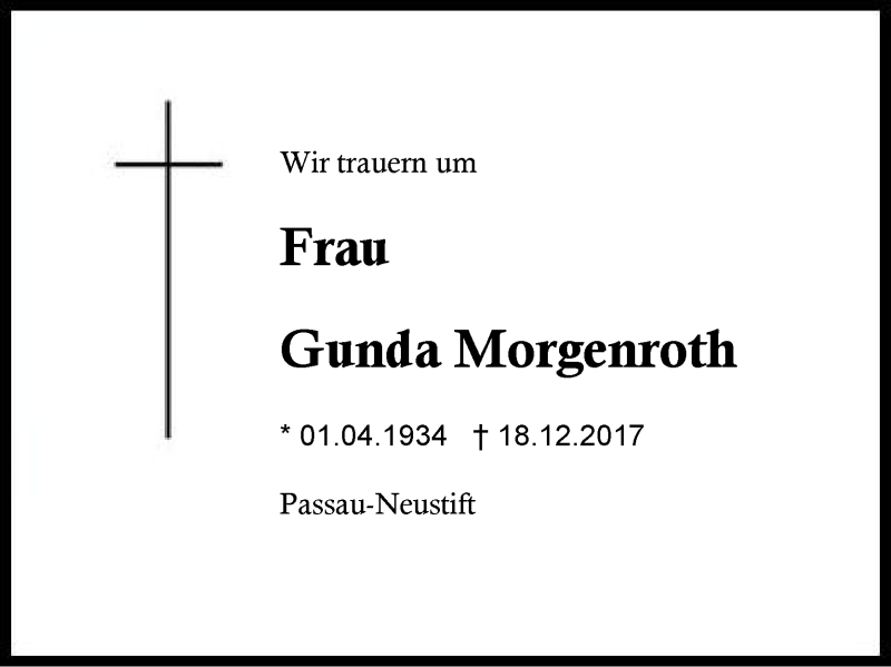 Hier finden Sie alle Traueranzeigen aus der Zeitung, die bisher für Gunda Morgenroth erschienen sind. Weitere Traueranzeigen, die in der Zeitung erscheinen, werden hier ebenfalls aufgelistet