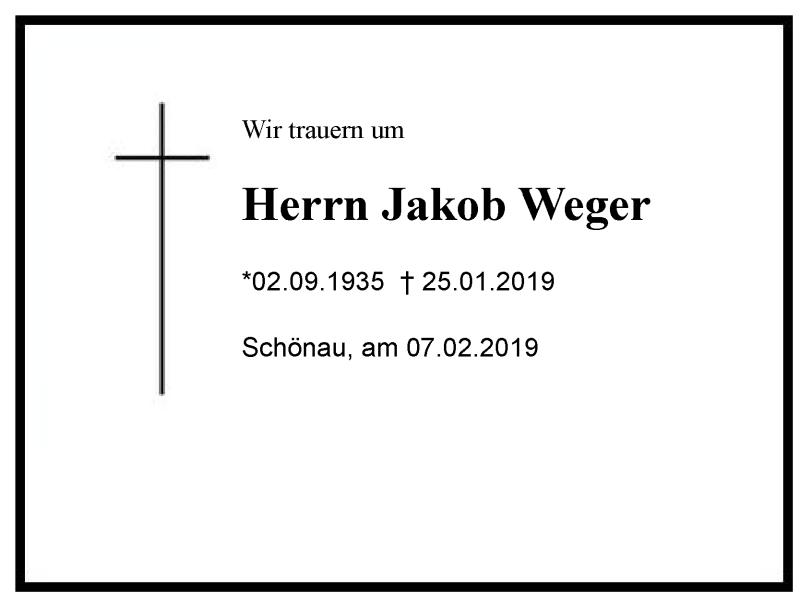 Hier finden Sie alle Traueranzeigen aus der Zeitung, die bisher für Jakob Weger erschienen sind. Weitere Traueranzeigen, die in der Zeitung erscheinen, werden hier ebenfalls aufgelistet