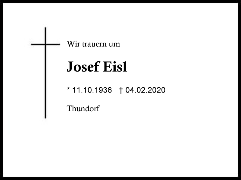 Hier finden Sie alle Traueranzeigen aus der Zeitung, die bisher für Josef Eisl erschienen sind. Weitere Traueranzeigen, die in der Zeitung erscheinen, werden hier ebenfalls aufgelistet