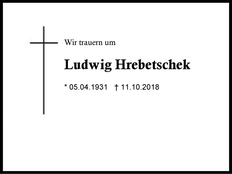 Hier finden Sie alle Traueranzeigen aus der Zeitung, die bisher für Ludwig Hrebetschek erschienen sind. Weitere Traueranzeigen, die in der Zeitung erscheinen, werden hier ebenfalls aufgelistet