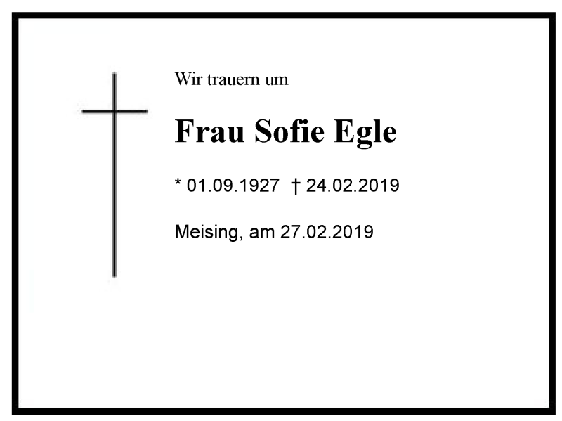 Hier finden Sie alle Traueranzeigen aus der Zeitung, die bisher für Sofie Egle erschienen sind. Weitere Traueranzeigen, die in der Zeitung erscheinen, werden hier ebenfalls aufgelistet